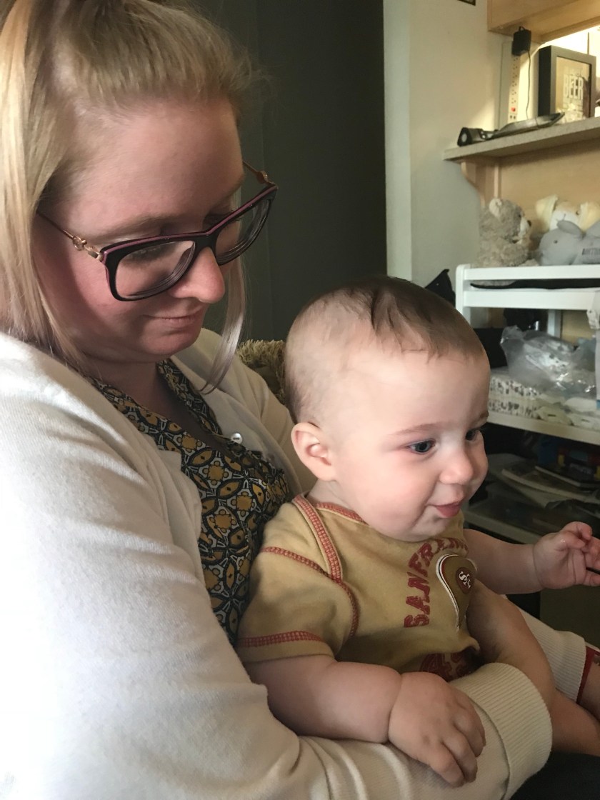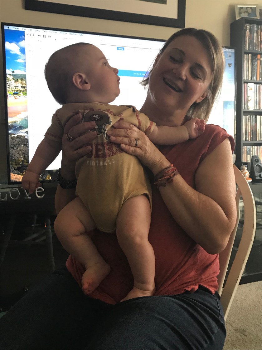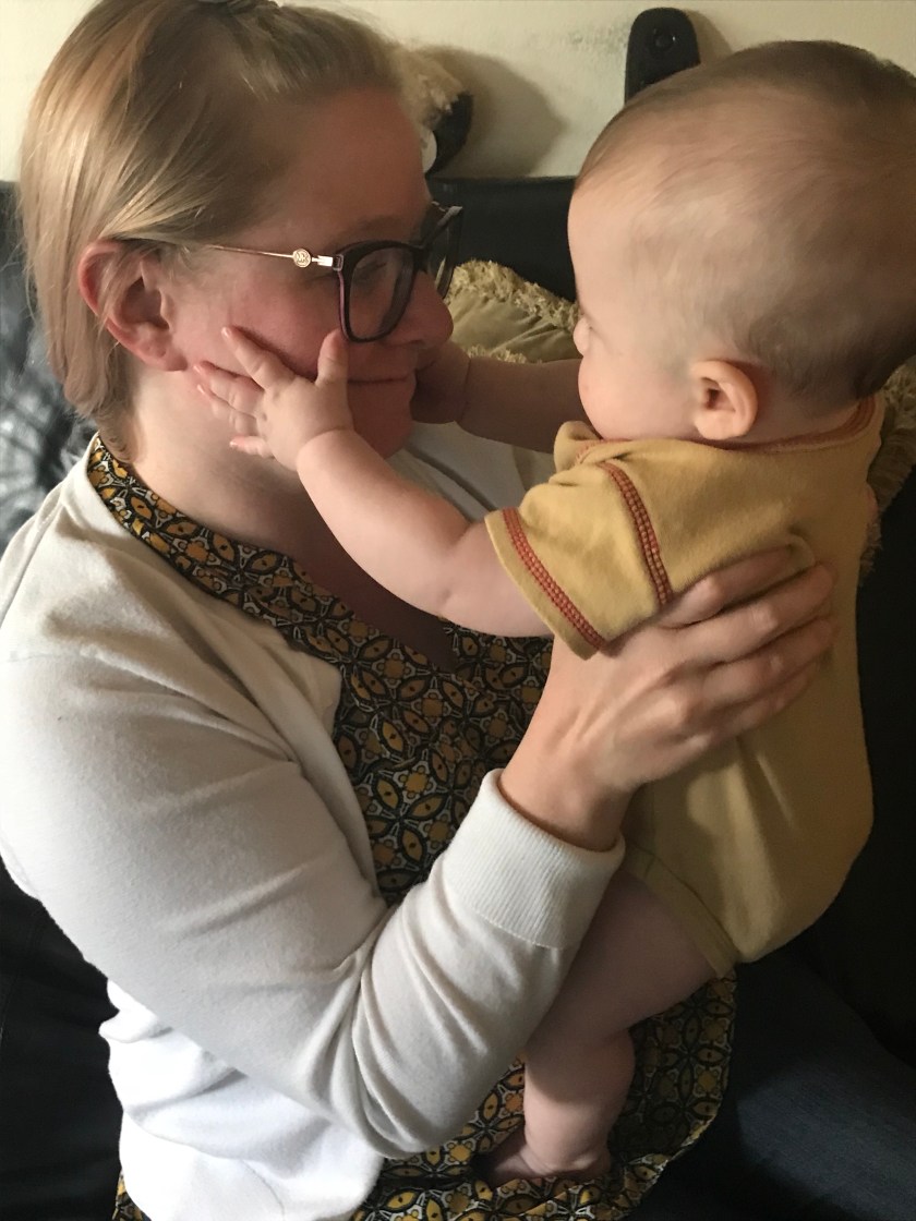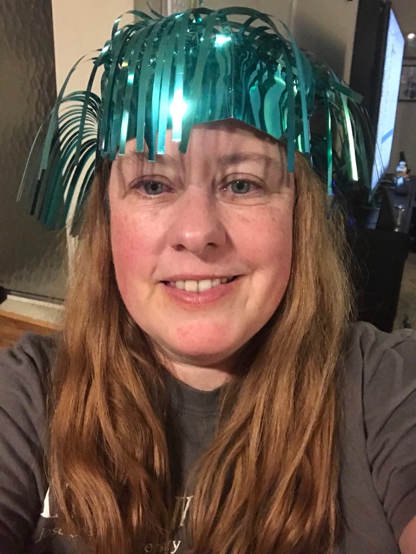 At one point William was fussy, so Monica put the base of the table decoration on her head which he enjoyed seeing. I wasn’t fast enough to get a photo of her briefly wearing it, but I did take one while I wore it myself.