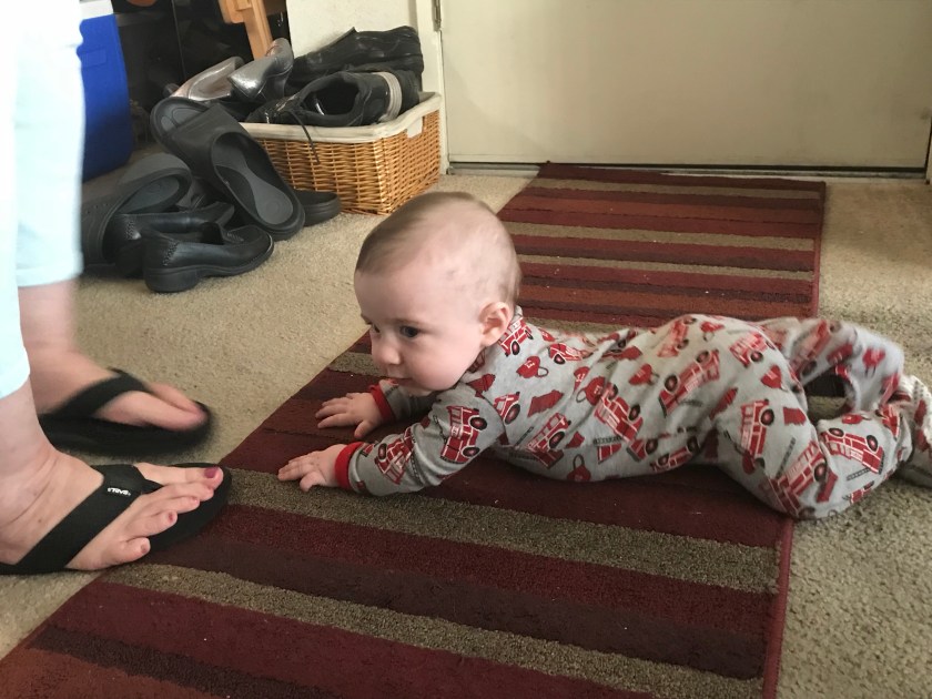 Joanna had stated that she thinks he would be officially crawling by now. We’ve been working with him to give him lots of practice.