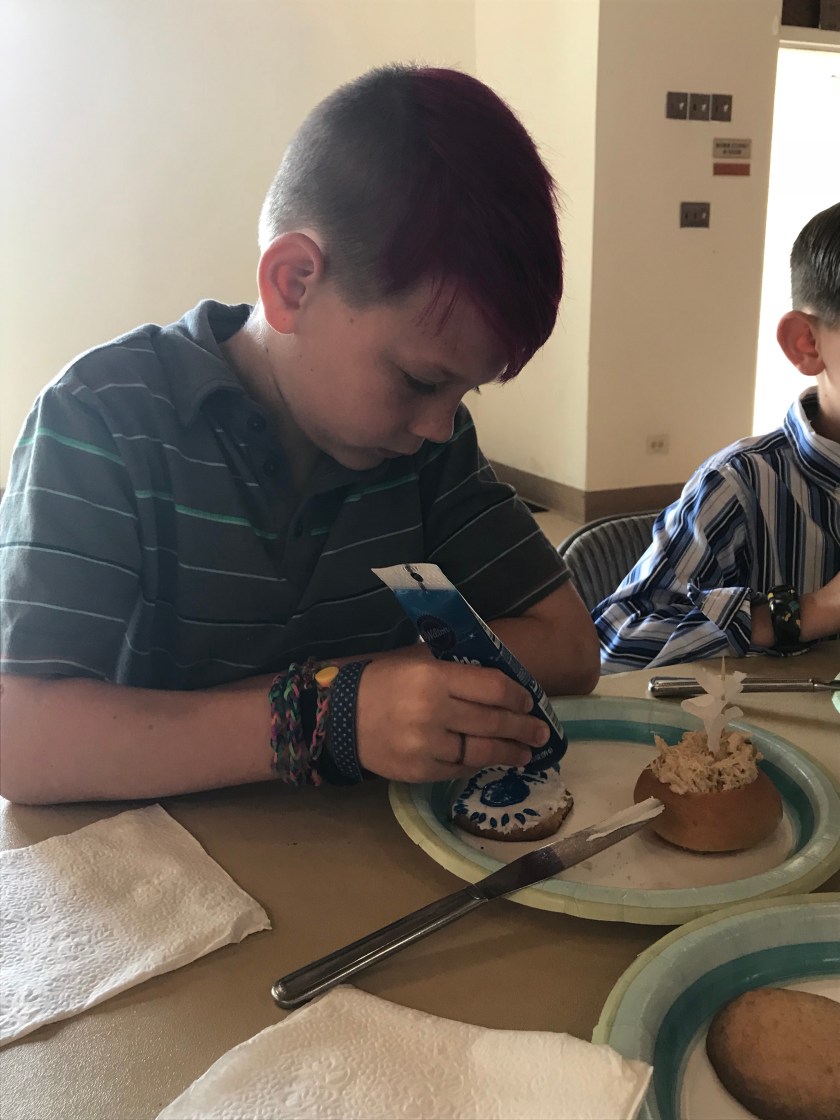 While they were free to decorate the cookies without putting a fish on them, they all decided to add fish. Though they paid attention for the most part, they were a lively lot overall.