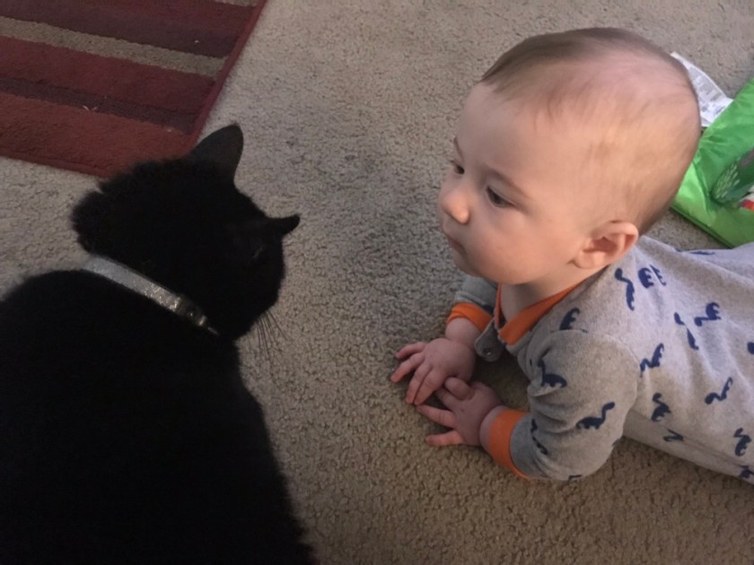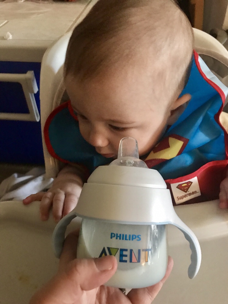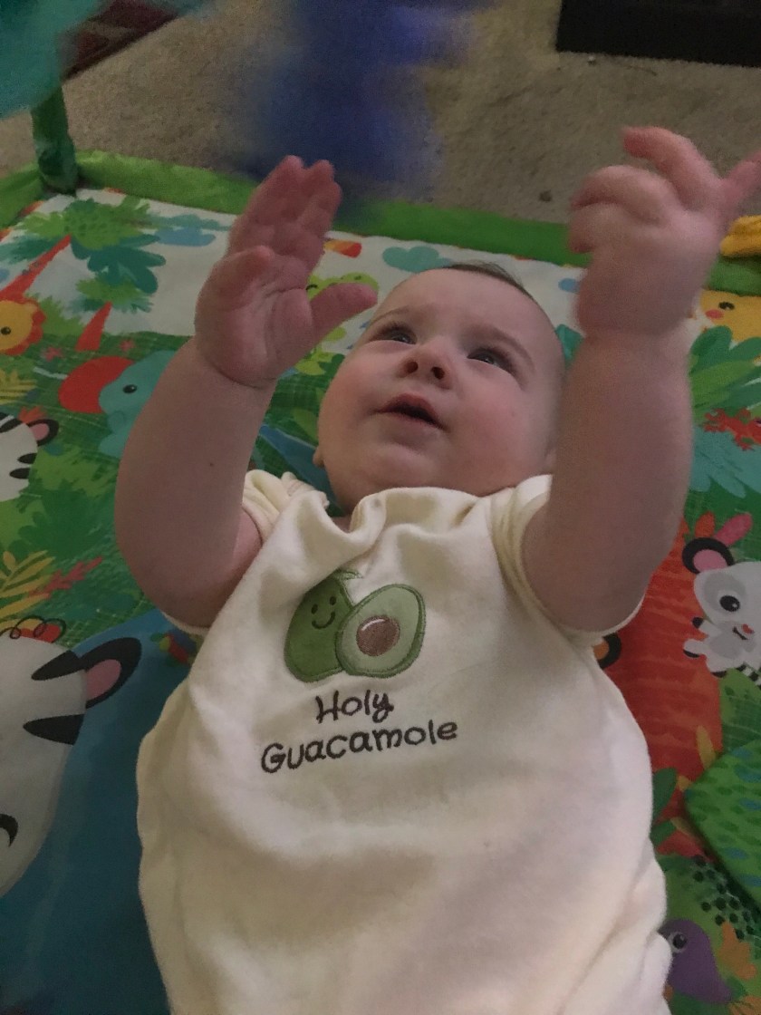 Wiliam’s doctor had recommended starting him with fruits then exploring vegetables. Today was the day we decided to try his first vegetable. In honor of this milestone, I put him in his Holy Guacamole vegetable onesie, a present from his Godparents, for his playtime before this meal.