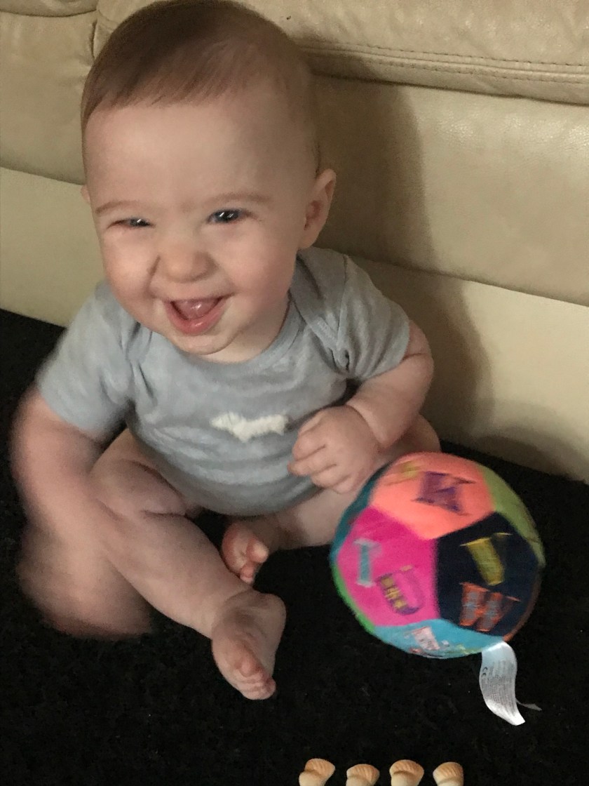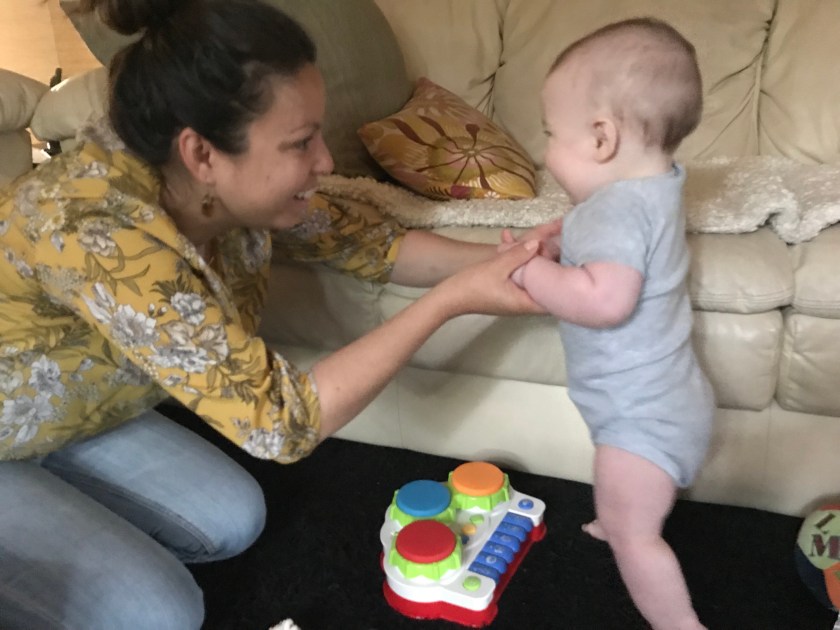 He definitely wants to be on his two feet. A lot of this is probably as he is around bigger kids often at daycare. He just can’t wait till he can play with them instead of having to just watch.