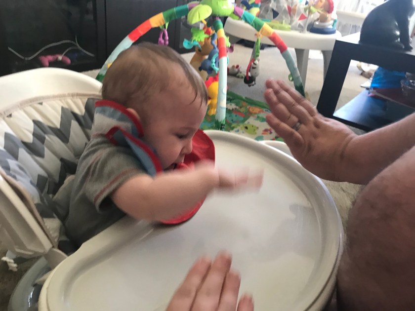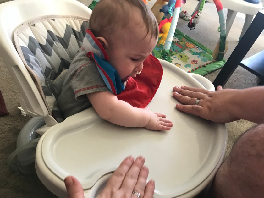 One evening he was more interested in slapping the table then eating. Without even discussing him, Matt and I joined him for a round of slap table.