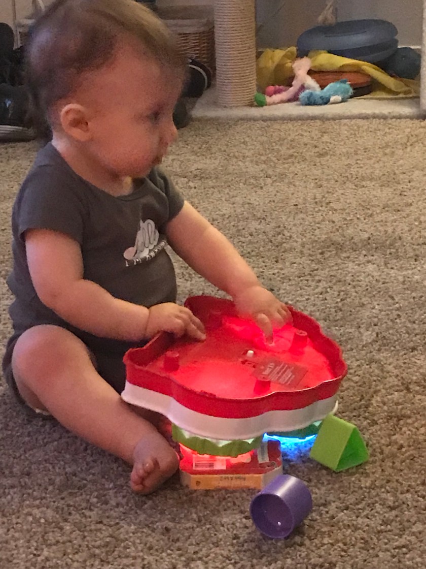 With this extra movement comes the need to make sure he doesn’t touch heavy things. Matt was pulling things away from his grasp.
