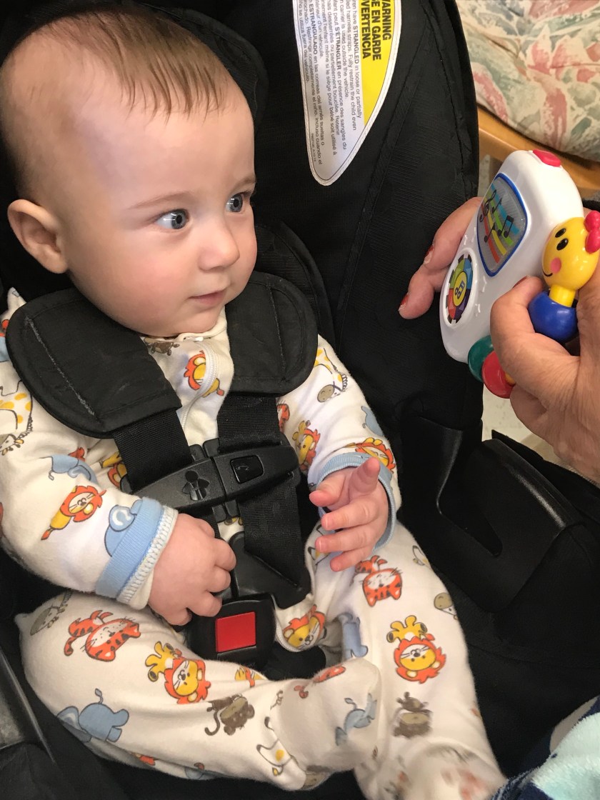 I had thought perhaps he would sleep this time, yet he didn’t even take a small nap. Instead he happily played with his ball and engaged with the teachers and other boy there.