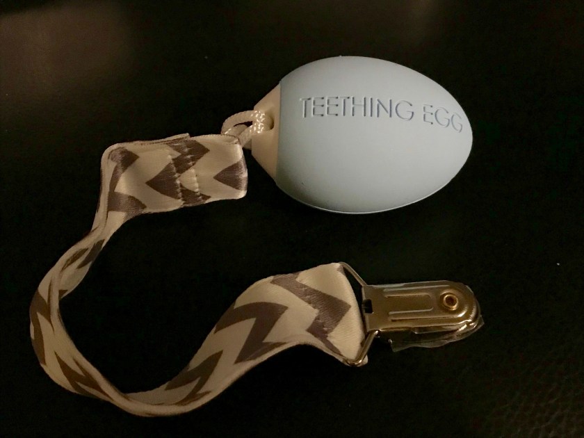 In recent weeks he’d been crying more, drooling a bit more and sucking on his fingers and fist more. Our friend Stephen suggested that he might be early teething, so I bough two products I’d had my eye on for a while, The Teething Egg and the Nummie Lovey Security Blanket with Attachment. The egg is shaped very similarly to chicken eggs and comes with an attachable lanyard. They have a variety of colors, I chose this blue in part of it’s almost a robin’s egg blue and I enjoyed finding robin eggs when going on walks with my dad in my early childhood.