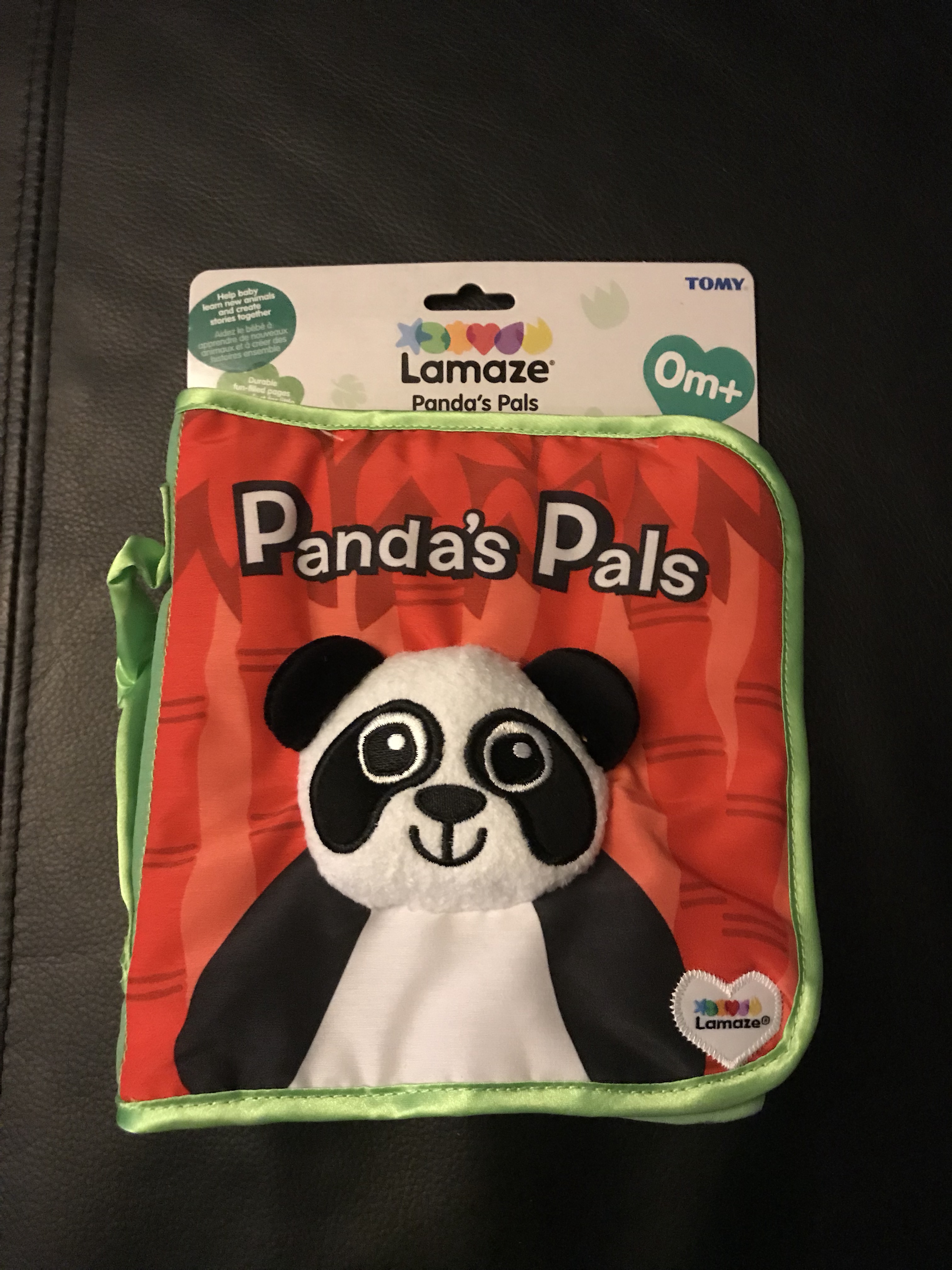 This week’s book review is of Panda Pals, another concept book with few words. On the front is a large panda with bright eyes and a head that can be felt and squished by little baby hands.